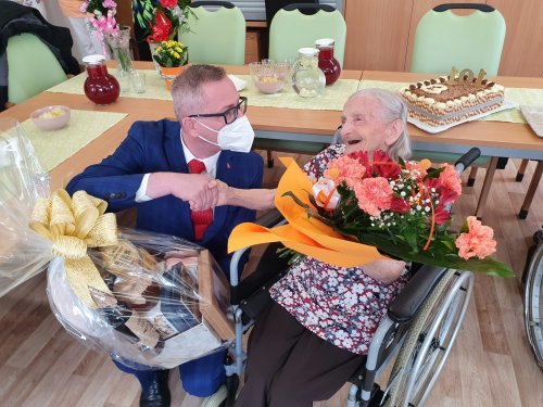 Před 101 lety se v Karviné narodila paní Aloisie Goluchová. Celý svůj život prožila právě na Karvinsku, vloni se stala klientkou Nového domova, taktéž v Karviné. K narozeninám, které slaví 22. dubna, jí dnes přišel popřát náměstek hejtmana kraje Jiří Navrátil.